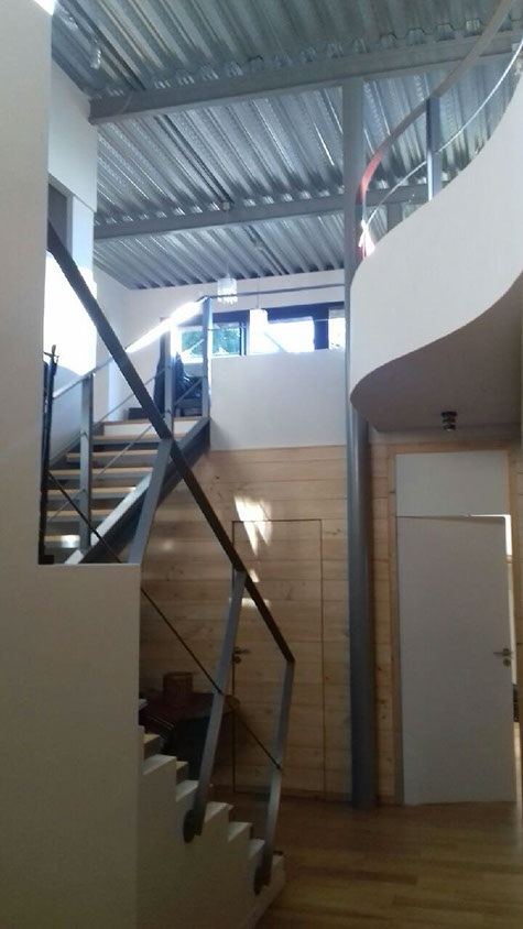 Le parti constructif allie techniques et matériaux complémentaires (briques mono mur, béton, métal, verre, bois…) pour servir une architecture étirée qui se veut discrète dans le paysage.