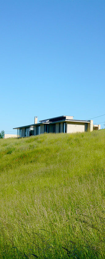 La maison regarde le paysage et ne souhaite pas être vue.