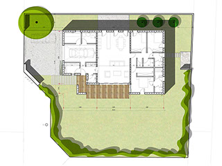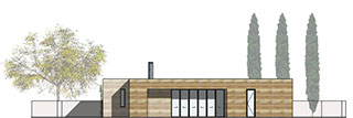 Ce projet de maison individuelle s’inscrit dans un tissu urbain de type «pavillonnaire». L’habitation s’implante au Nord du terrain dans les limites de constructibilité (prospect) imposés par le PLU pour pouvoir bénéficier des apports solaire d’hiver, de la lumière, des quelques vues lointaines de qualité et dégager un espace vert d’usages au Sud.
