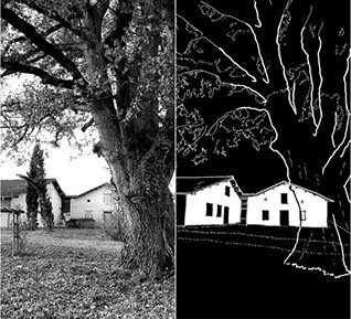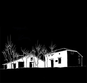Le fronton et son aire de jeux ainsi que le boulodrome et le petit bâtiment de services sont implantés Nord/Sud, parallèlement à la RD29. Ils s’organisent dans la trame de plantation des platanes qui se développera, dans le cadre de la re-composition générale, en direction de l’Est au-delà de la route départementale vers l’espace salle polyvalente.