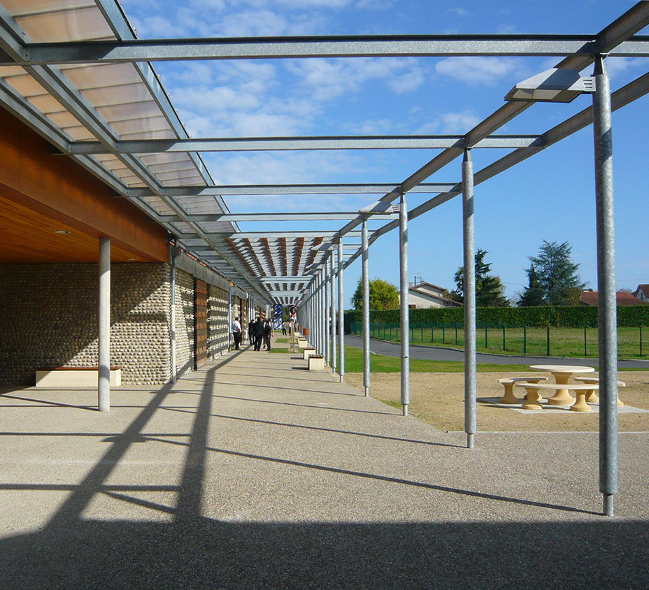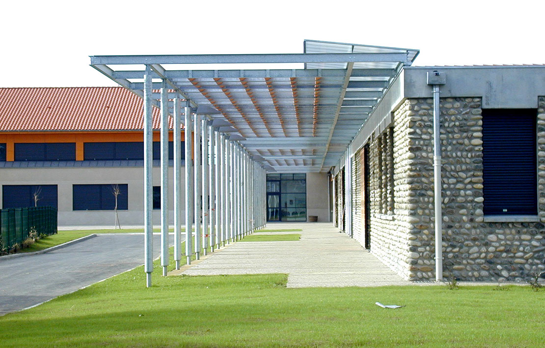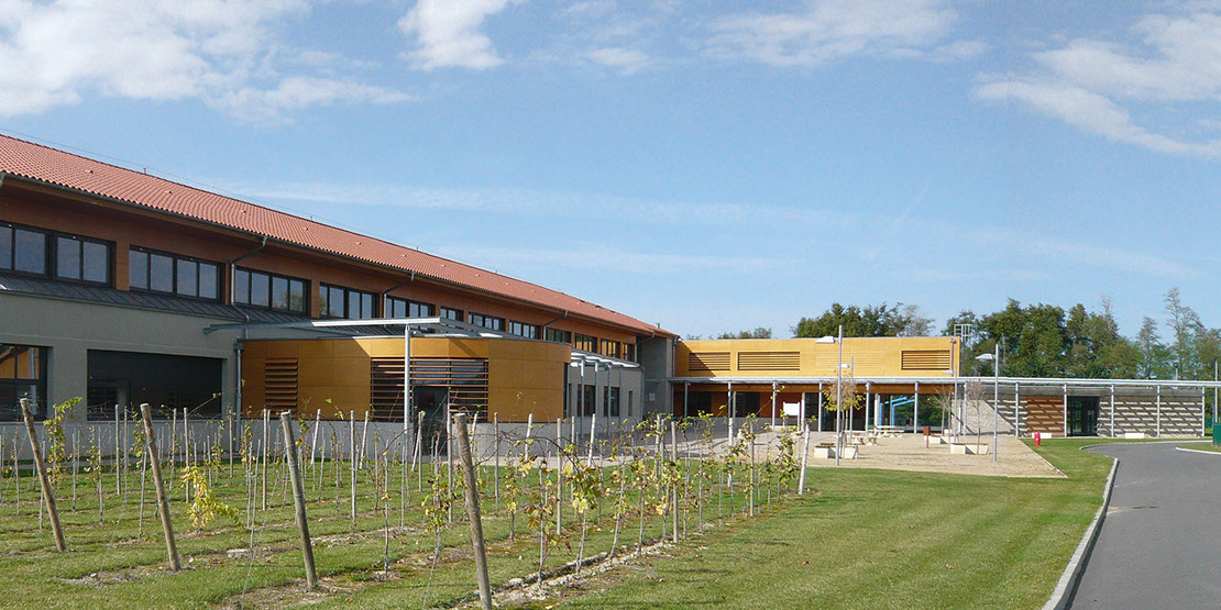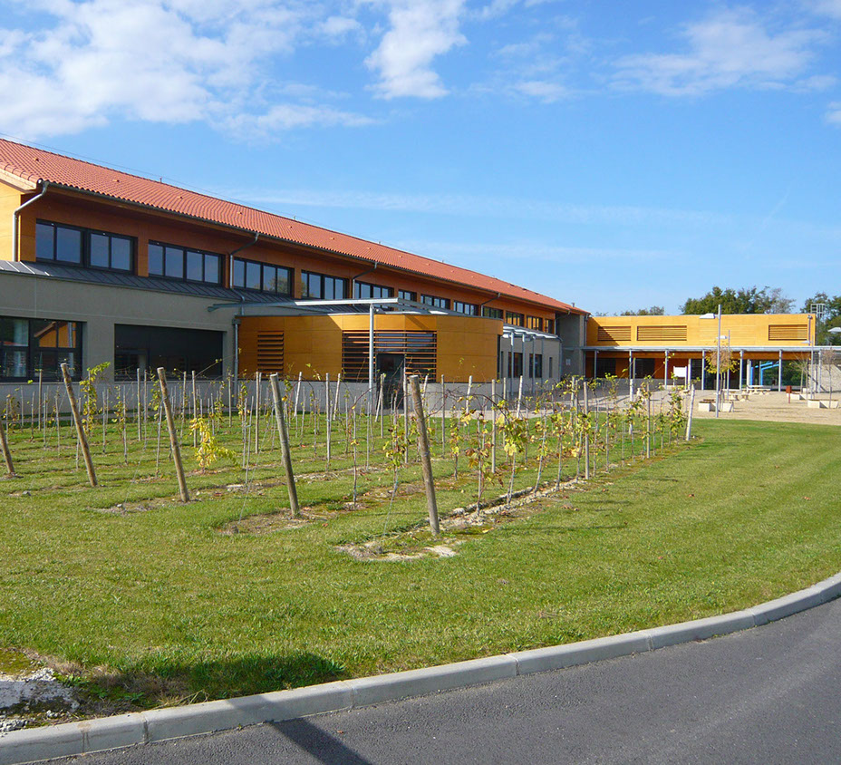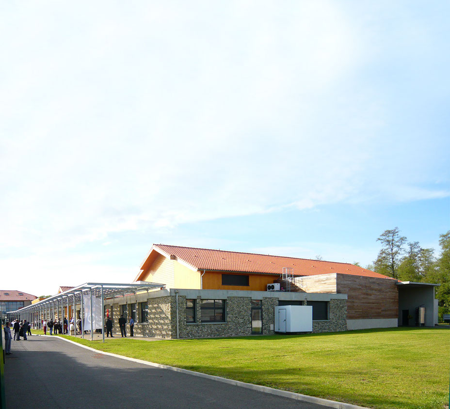 Le lycée agri-viticole de Riscle réunit un Lycée d’Enseignement Professionnel Agricole (LEPA), un Centre de Formation des Apprentis (CFA) et un Centre de Formation professionnel pour adultes (CFPPA). Il forme ou perfectionne les différents élèves aux métiers de la vigne et du vin à travers 9 filières. La configuration de la parcelle (en L) et les principes de la Haute Qualité Environnementale ont guidé le parti architectural. Le terrain présentait des difficultés d'accès depuis la ville qui ont été traitées par l'organisation et la qualification des différentes séquences d'entrée à l'équipement. La vocation de lycée agricole a inspiré la mise en forme d'une architecture contemporaine en référence aux fermes locales. Les corps de bâtiments sont implantés en équerre, couverts de toitures en pentes ou plates. Les matériaux mis en œuvre (galets, pierre, bois) sont issus des traditions locales.