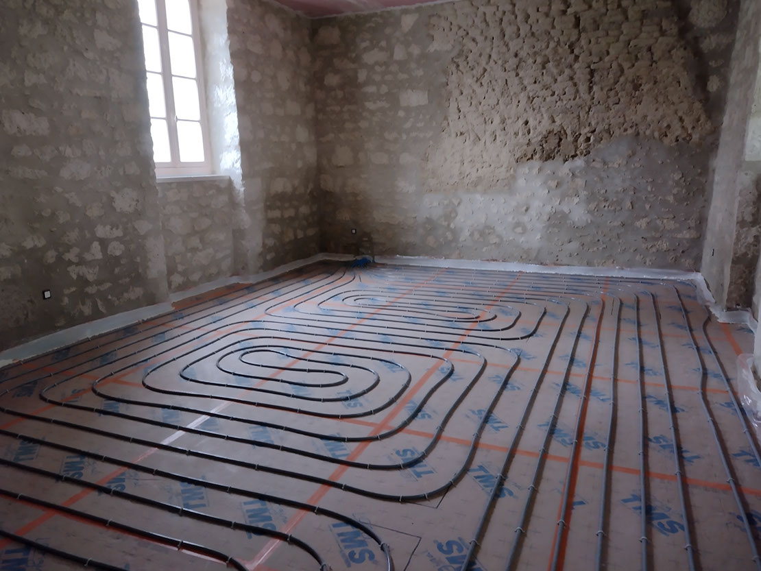 Le projet de Madame K. consiste à retrouver le bâtiment comme à son origine, en supprimant les traces des années 1960 durant lesquelles les volumes ont été découpés et réduits. Très orientée vers les démarches écologiques et qualitatives, Madame K. a souhaité travailler avec des matériaux nobles (le bois, la pierre) et a choisi un chauffage par le sol alimenté par une chaudière à granulés bois.
