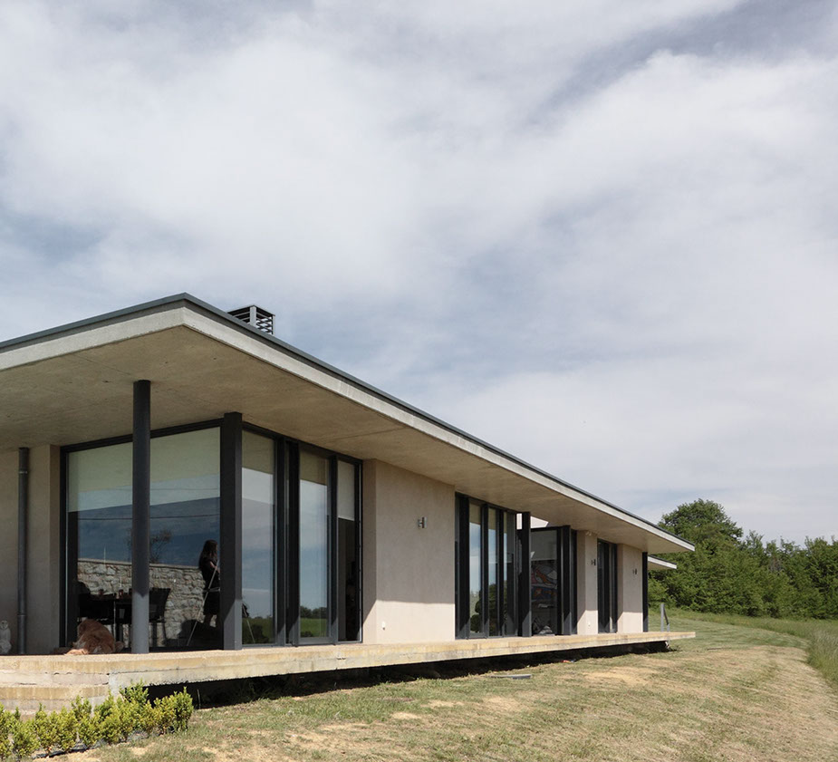 La maison regarde le paysage et ne souhaite pas être vue.