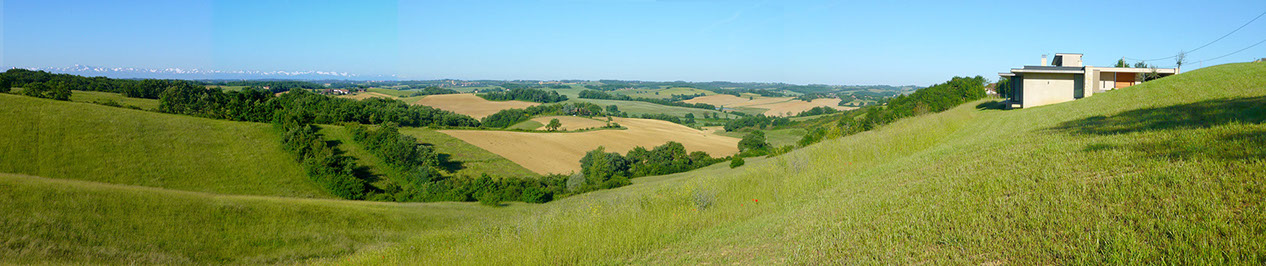 Cette maison individuelle s’inscrit dans un site de grande qualité paysagère. Le terrain, situé à l’Ouest du village, à flanc de coteau, bénéficie de très belles vues dégagées sur le « grand paysage », les Pyrénées. Le programme comprend une maison d’habitation type 4 avec deux garages et une piscine. Le Maître d’Ouvrage souhaitait une architecture contemporaine discrète, respectueuse du site et s’inscrivant dans une démarche de développement durable (choix de matériaux locaux, utilisation d’énergies renouvelables…).